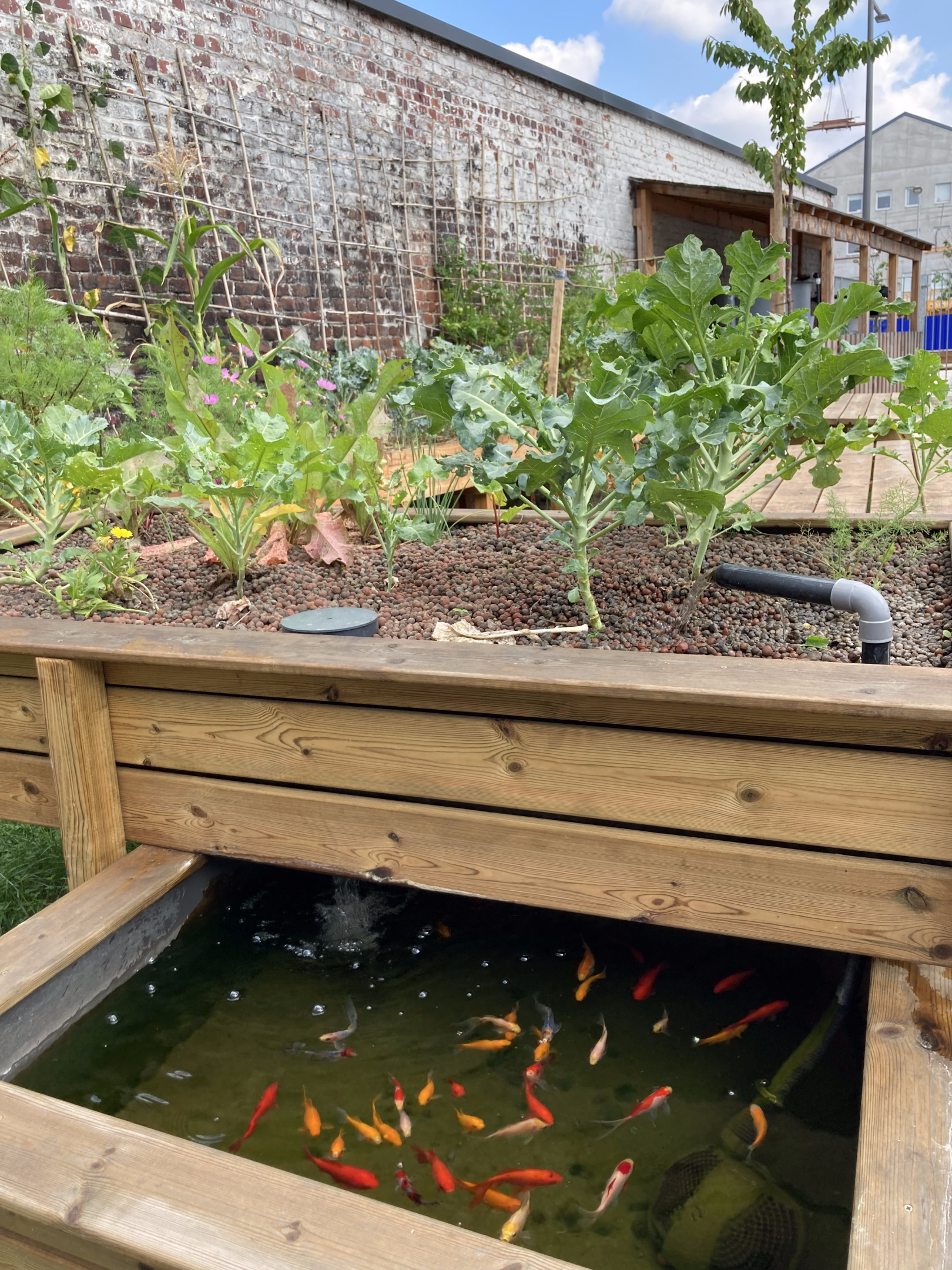 La ferme urbaine est soumise aux contraintes auxquelles l’agriculture en ville fait face : un sol pollué et un manque d’espace. Marguerite, en charge de la communication chez Lilotopia, nous explique que l’équipe optimise le terrain en jonglant entre les systèmes de production traditionnels et d’autres plus innovants. D’un côté, des bacs potagers, de l’autre, des techniques d’agriculture comme l’aquaponie (système associant culture de la plante et élevage de poissons) et l’hydroponie.