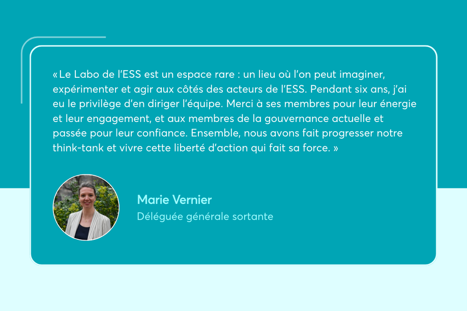 Après 6 ans d'engagement et réalisations de belles réussites pour le Labo de l'ESS, Marie Vernier, déléguée générale, s'en va pour de nouvelles aventures !